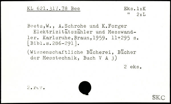Beetz,W., A.Schrohe und K.Forger Elektrizitätszähler und Messwandler.