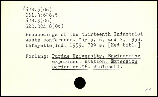 Proceedings of the thirteenth Industrial waste conference. May 5> 6> and 7> 1958, Lafayette^Ind. 1959.
