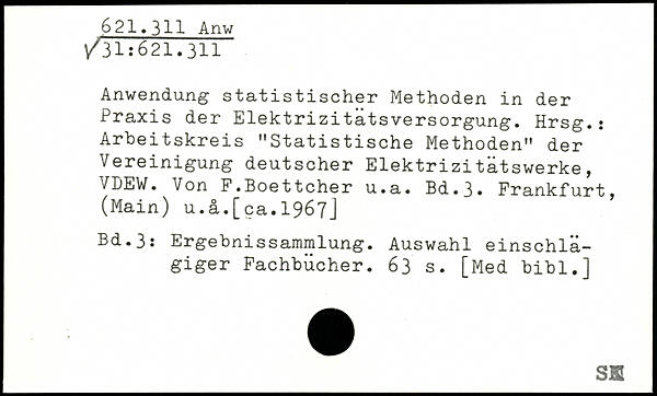 Anwendung statistischer Methoden in der Praxis der Elektrizitätsversorgung. Hrsg.: Arbeitskreis "Statistische Methoden" der Vereinigung deutscher Elektrizitätswerke, VBEW. Von F.Boettcher u.a.