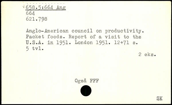 Anglo-American council on productivity. Packet foods. Report of a visit to the U.S.A. in 1951.