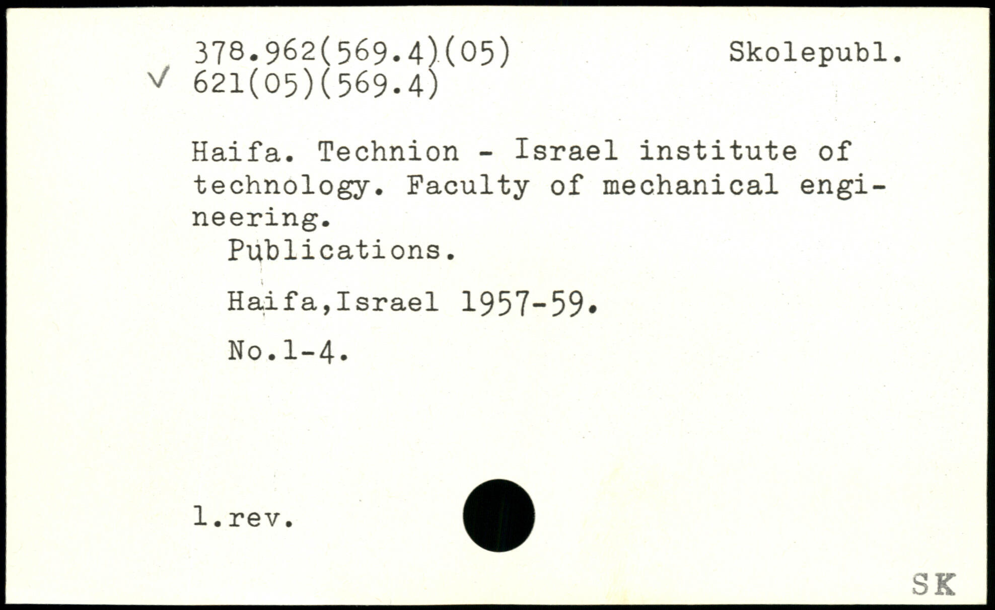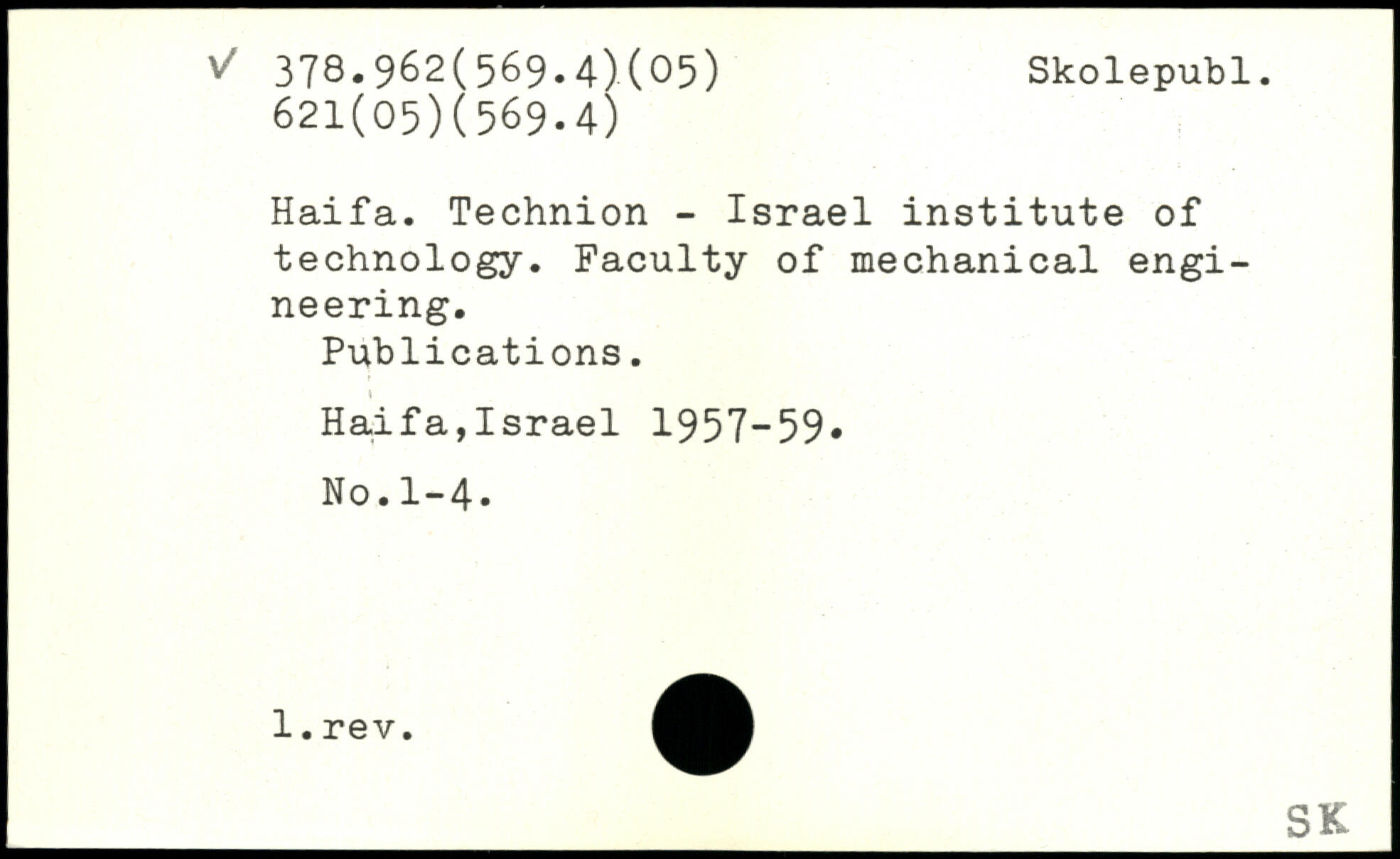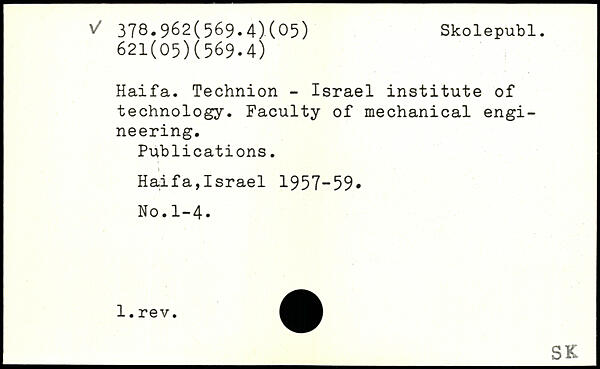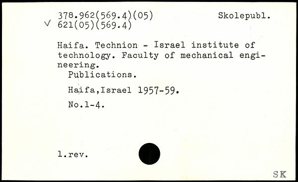 Haifa. Technion - Israel institute of technology. Faculty of mechanical engineering. Publications. Haifa,Israel 1957—59. No.1-4.