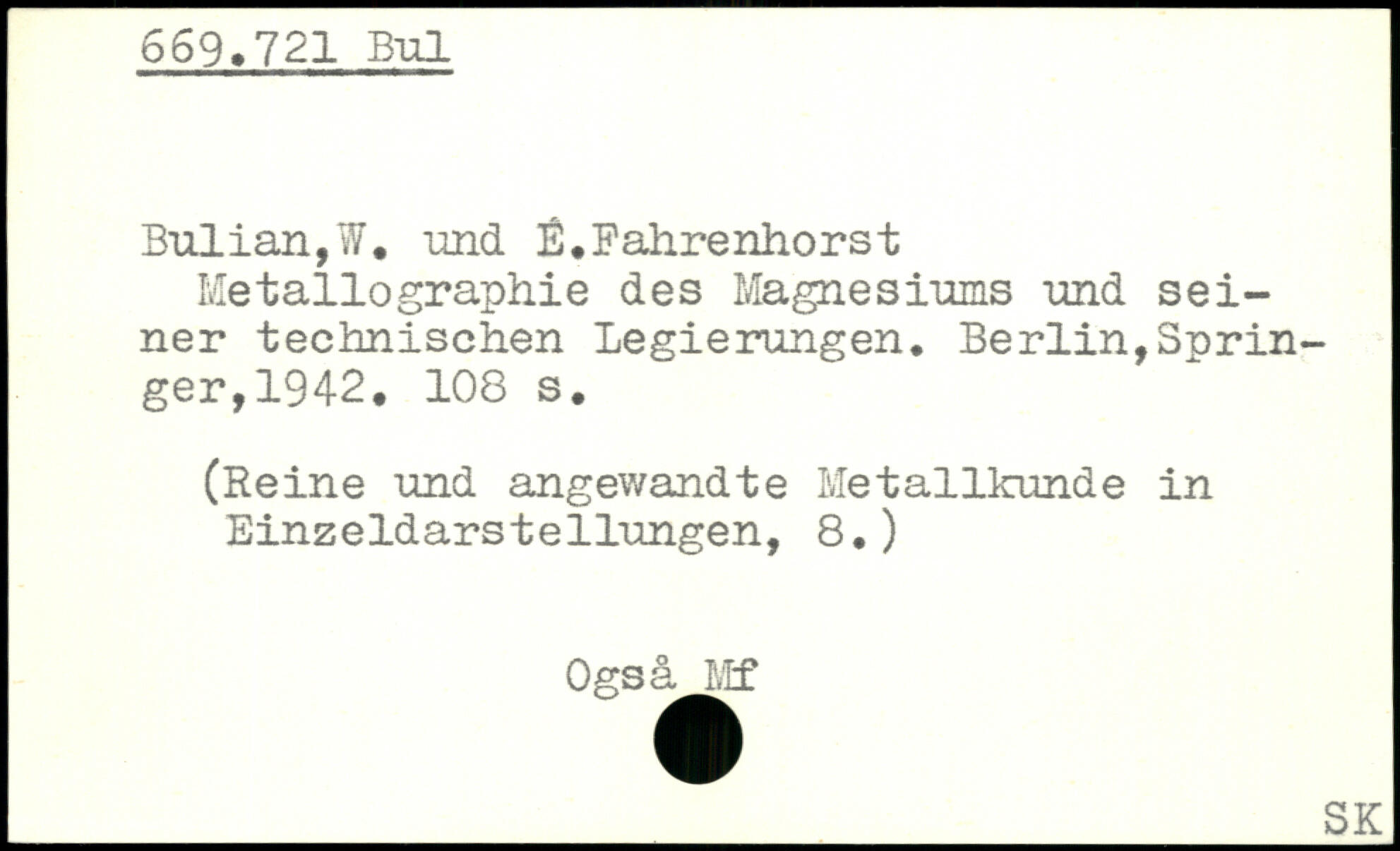 Bulian,W. und É.Fahrenhorst Metallographie des Magnesiums und seiner technischen Legierungen.