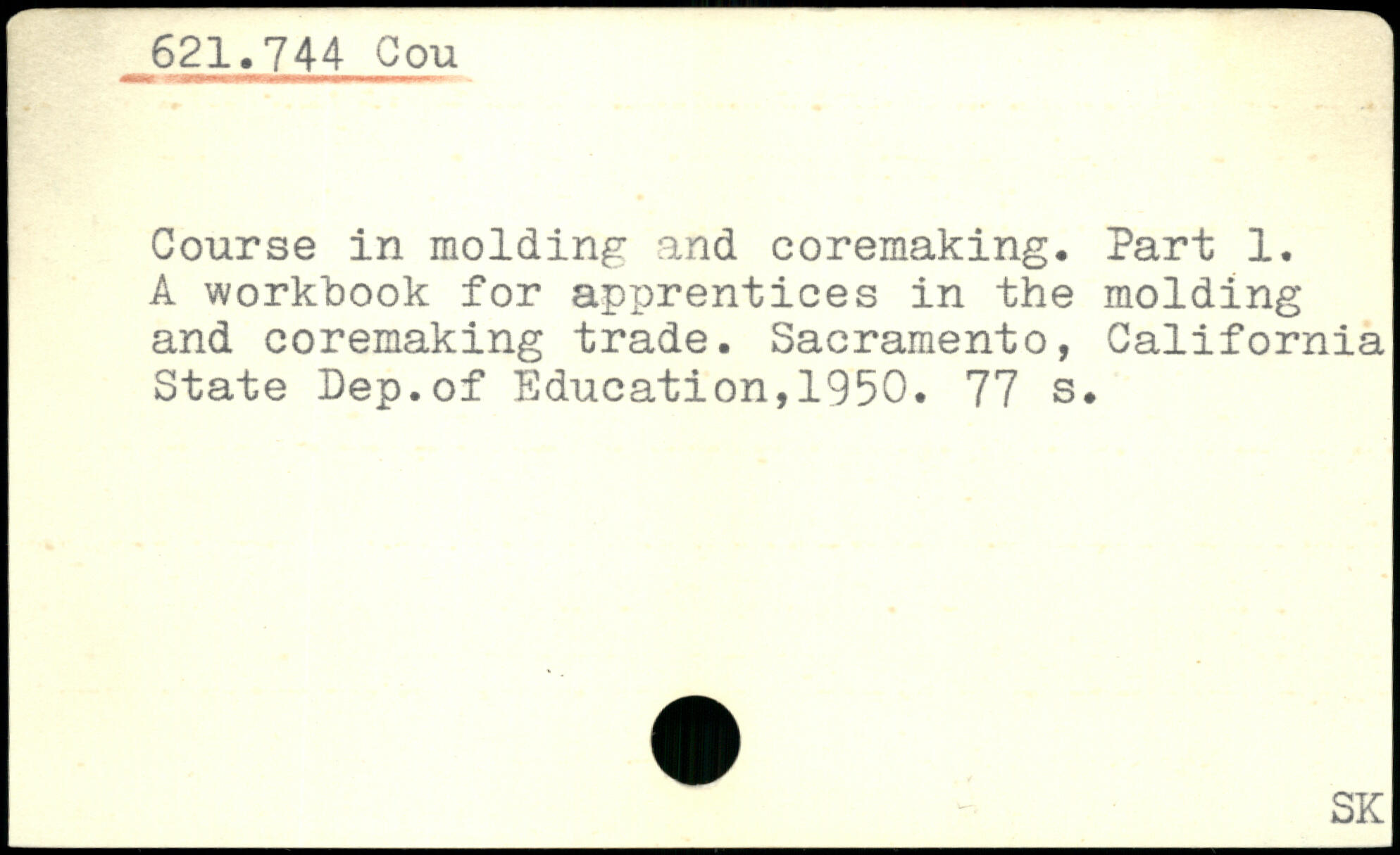 Course in molding and coremaking. Part 1. A workbook for apprentices in the molding and coremaking trade. Sacramento, California State Dep.of Education,1950.