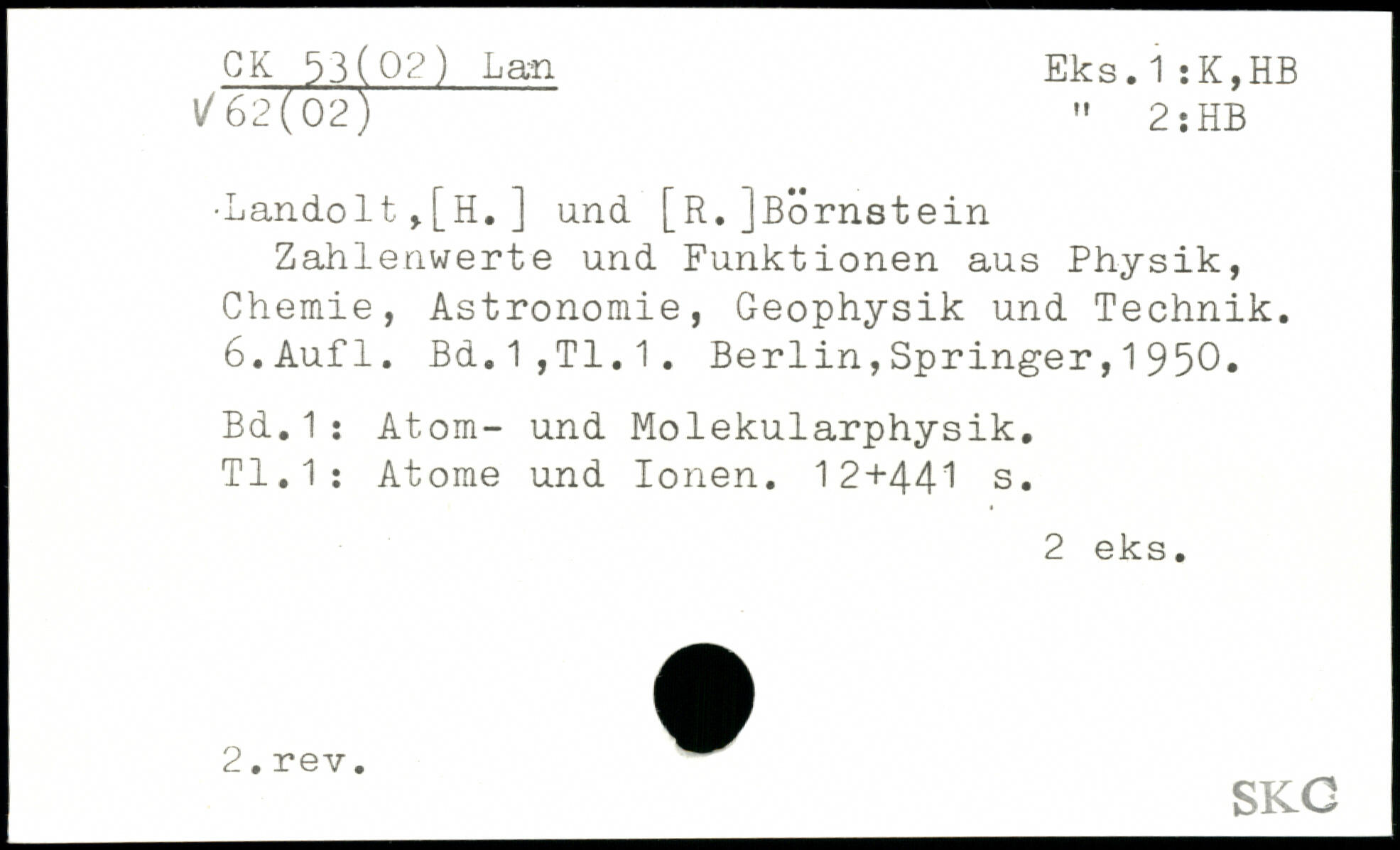 .Landolt,[H.] und [R.Jßörnstein Zahlenwerte und Funktionen aus Physik, Chemie, Astronomie, Geophysik und Technik.