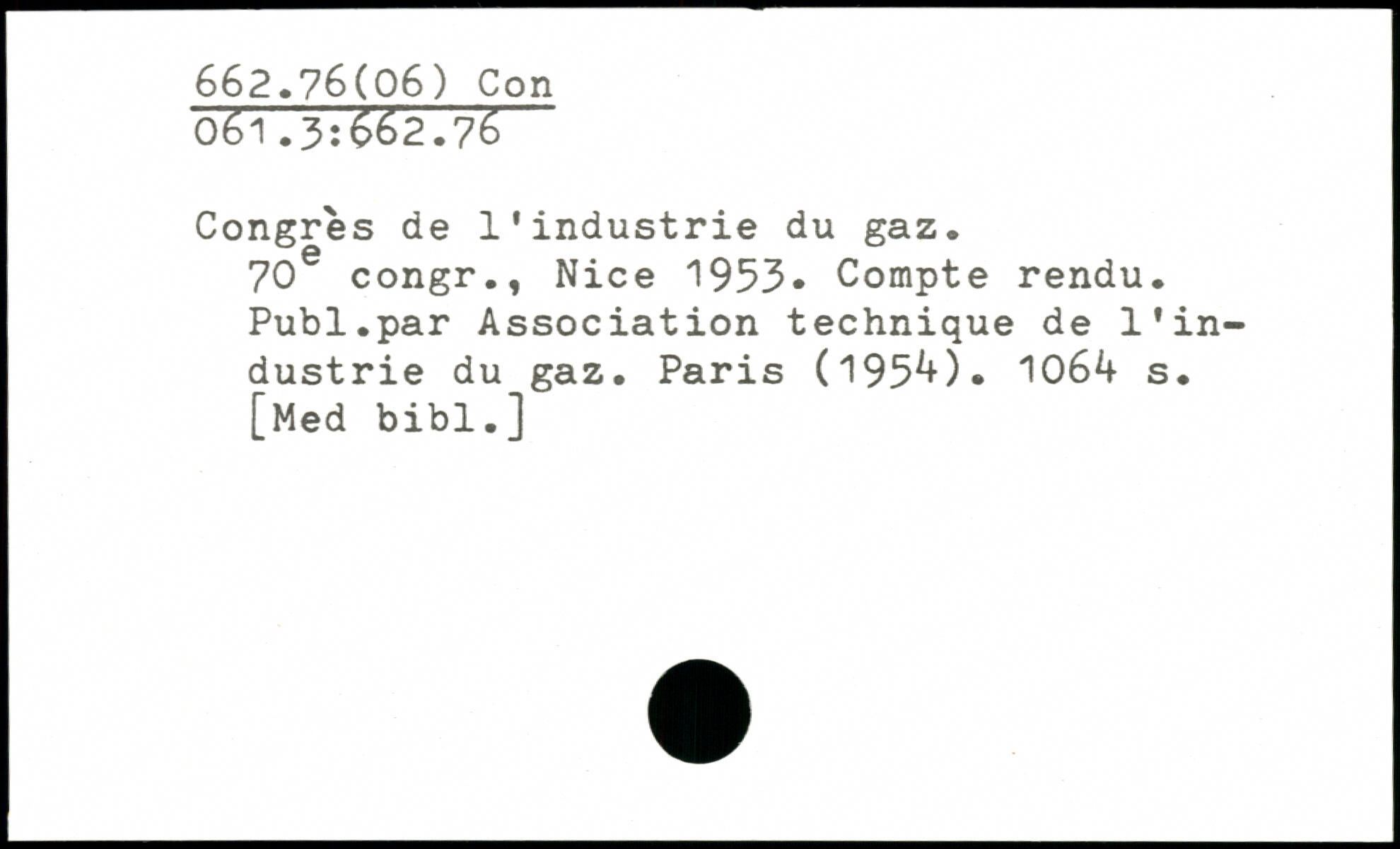 Congres de l'industrie du gaz. 70e congr., Nice 1953. Compte rendu. Publ.par Association technique de l'industrie du gaz. Paris (195^), 106^ s. [Med bibl.]