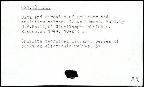 Data and circuits of reciever and amplifier valves. 1.supplement.
