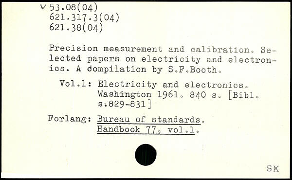 Precision measurement and calibration,, Selected papers on electricity and electronics. A bompilation by S.P.Bootho Vol.ls Electricity and electronicso