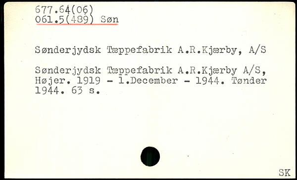Sønderjydsk Tæppefabrik A.R.Kjærby, A/S Sønderjydsk Tæppefabrik A.R.Kjærby A/S, Højer. 1919 - 1.December - 1944. 'Tønder 1944.