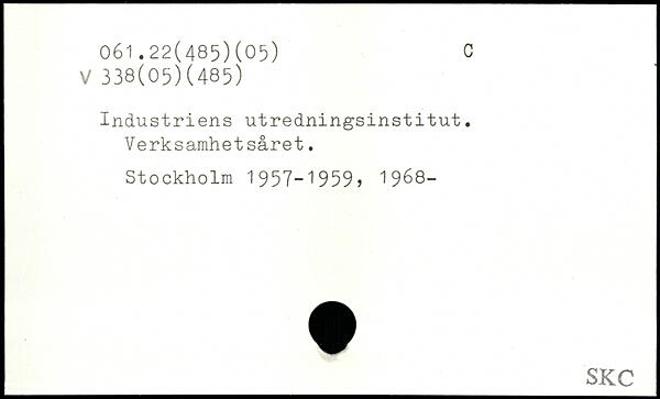Industriens utredningsinstitut. Verksamhetsåret.