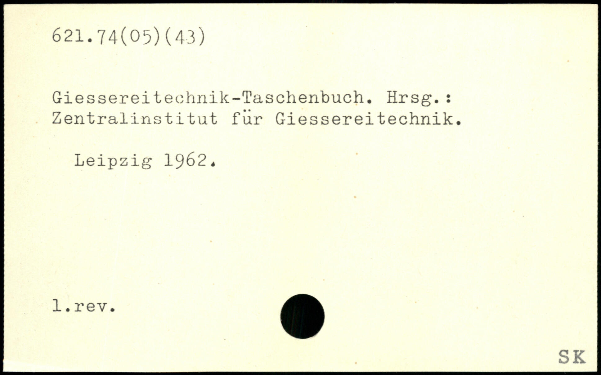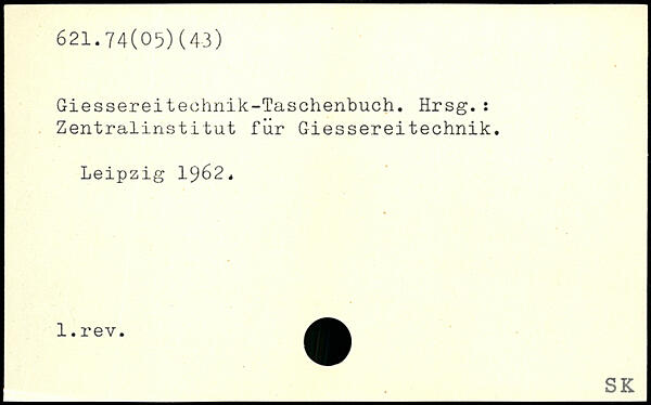 Giessereitechnik-Taschenbuch. Hrsg.: Zentralinstitut fiir Giessereitechnik.