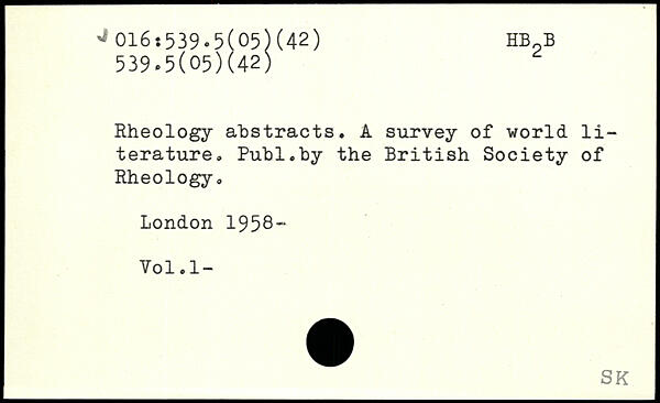 Rheology abstracts. A survey of world literature.