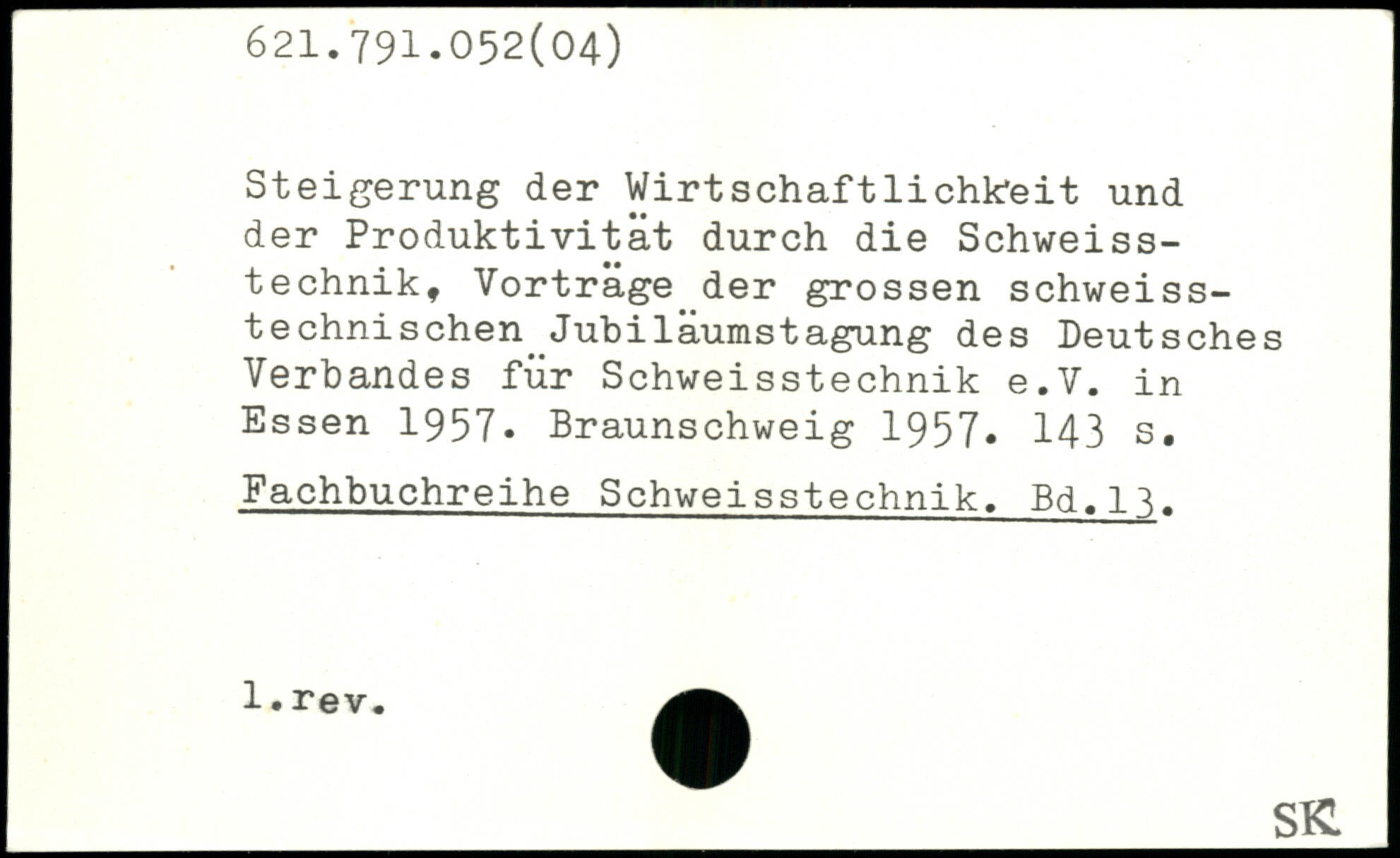 Steigerung der Wirtschaftlichkeit und der Produktivität durch die Schweisstechnik, Vorträge der grossen schweiss-technischen Jubiläumstagung des Deutsches Verbandes für Schweisstechnik e.V. in