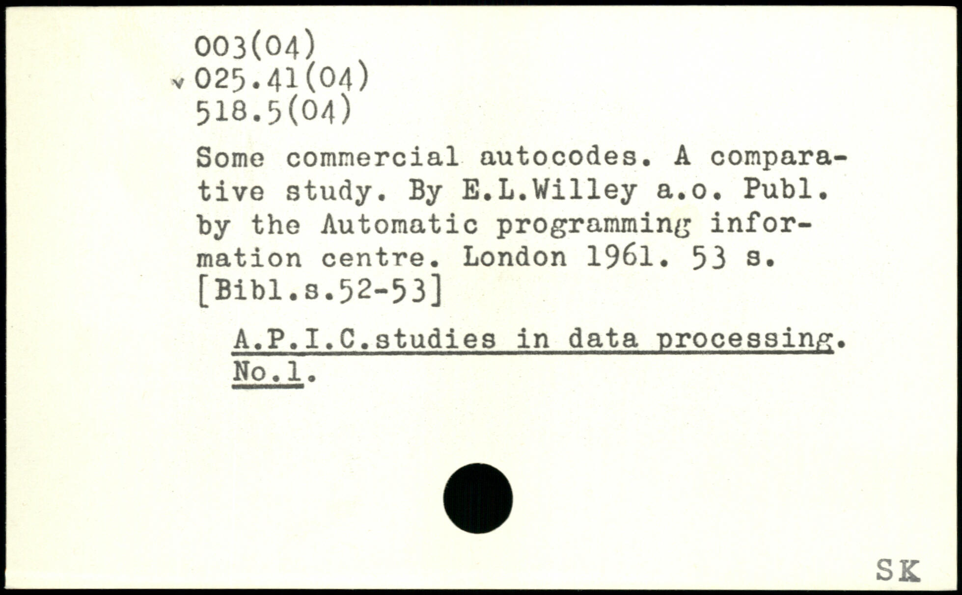 Some commercial autocodes. A comparative study. By E.L.Willey a.o.