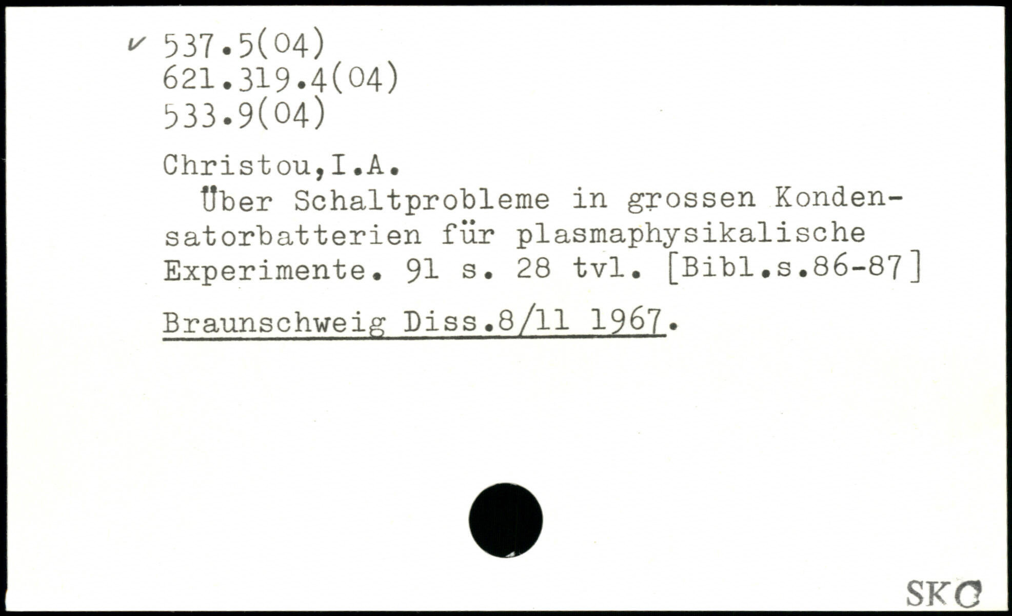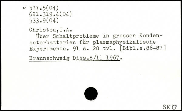 über Schaltprohleme in grossen Konden-satorhatterien für plasmaphysikalische Experimente.