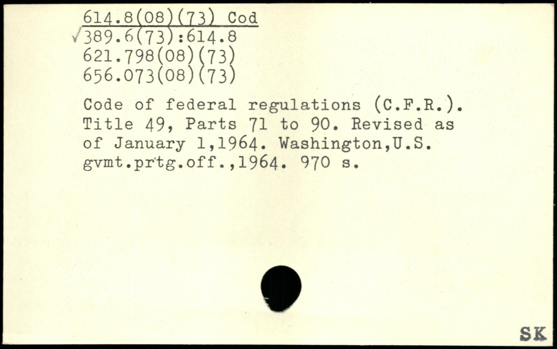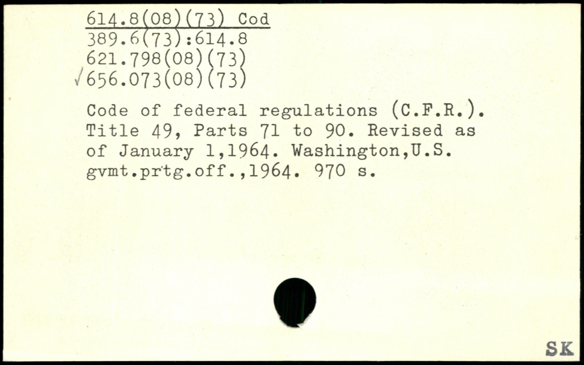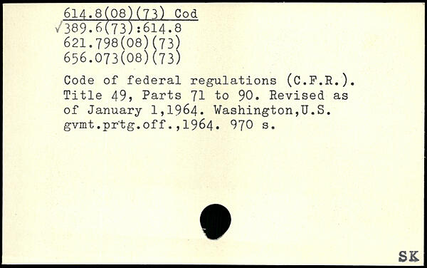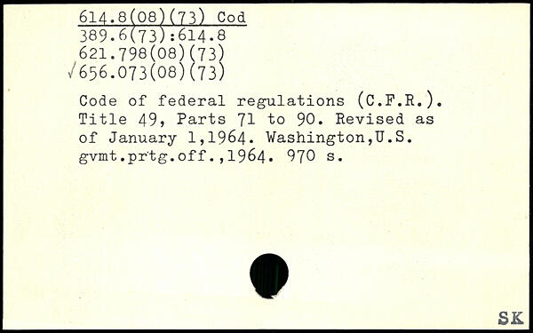 Code of federal regulations (C.F.R.). Title 49, Parts 71 to 90. Revised as of January 1,1964. Washington,U.S. gvmt.pr'tg.off. , 1964.