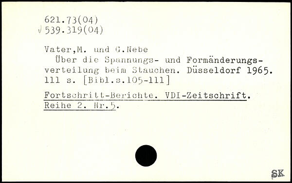 Vater,M. und (i.Nebe Über die Spannungs- und Formänderungs-verteilung beim Stauchen. Düsseldorf 1965.