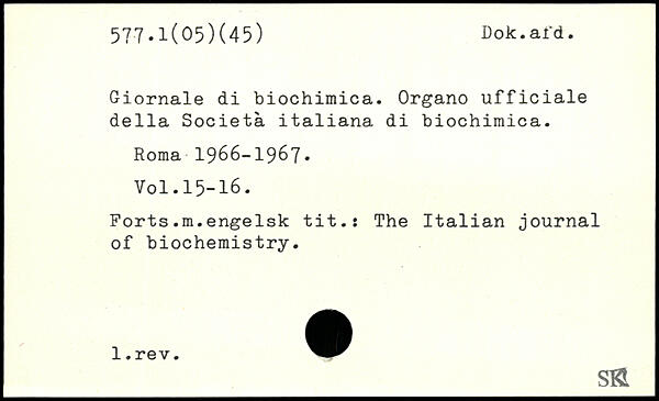 Giornale di biochimica. Organo ufficiale della Societa italiana di biochimica.