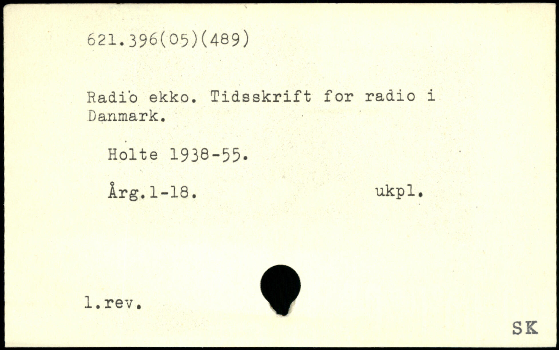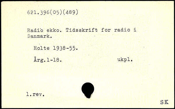 Radio ekko. Tidsskrift for radio i Danmark. Holte 1938-55. Årg.1-18. ukpl.