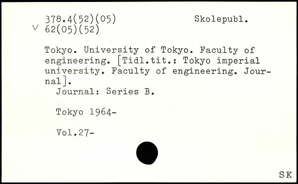 I Tokyo. University of Tokyo. Faculty of engineering. [Tidl.tit.s Tokyo imperial university. Faculty of engineering. Journal ]. Journal: Series B.