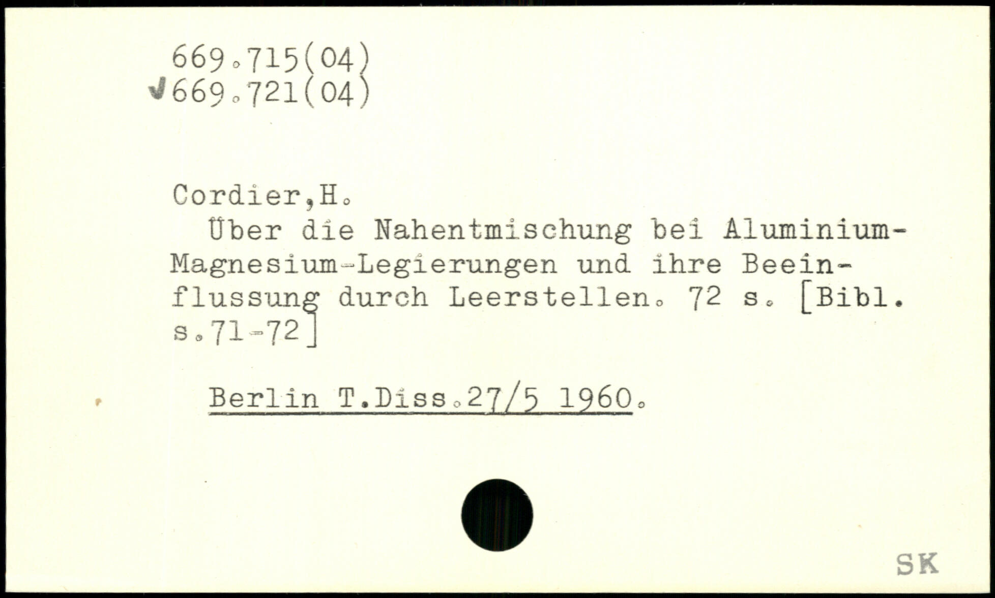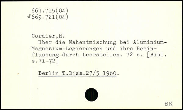 Cordier?Ho Über die Nahentmischung bei Aiuminium-Magnesium-Legierungen und ihre Beeinflussung durch Leerstellen