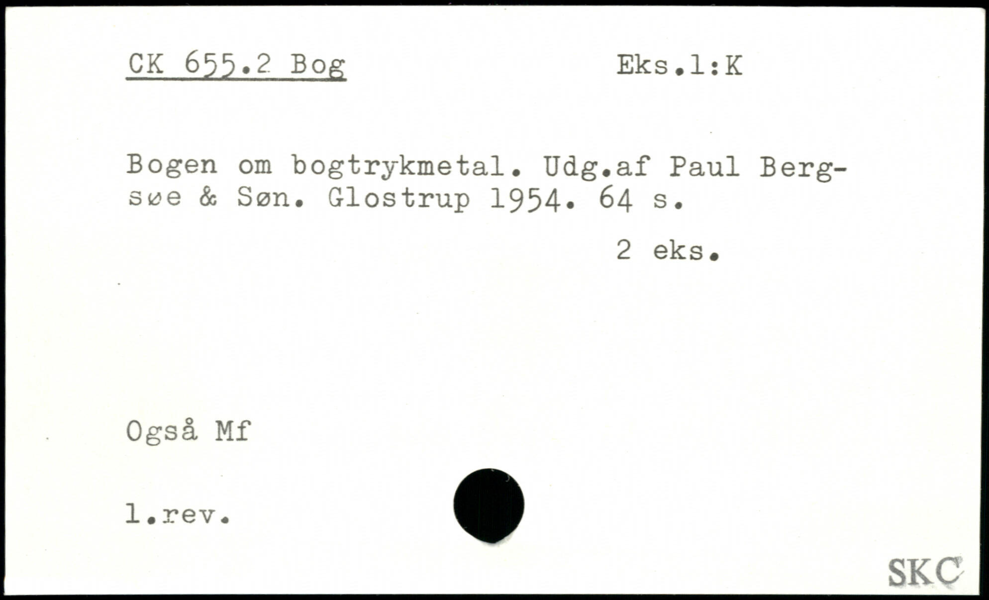Bogen om bogtrykmetal. Udg.af Paul Berg-søe & Søn. Glostrup 1954.