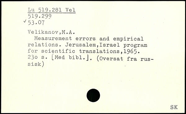 Measurement errors and empirical relations. Jerusalem,Israel program for scientific translations,1965. 23o s. [Med bibl.J. (Oversat fra rus- j sisk)