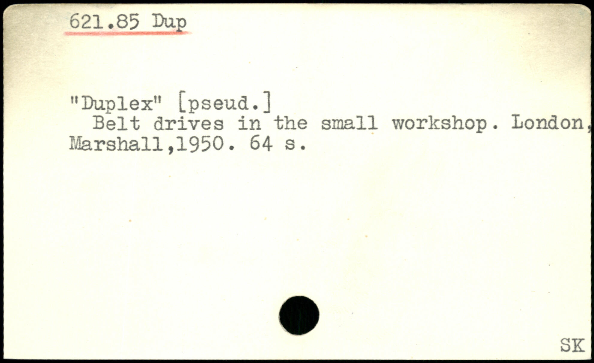 621.85 Dup ”Duplex'' [pseud.] Belt drives in the small workshop.