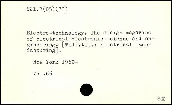 Electro-technology. The design magazine of electrical-electronic science and engineering. [Tidl.tit.s Electrical manufacturing].