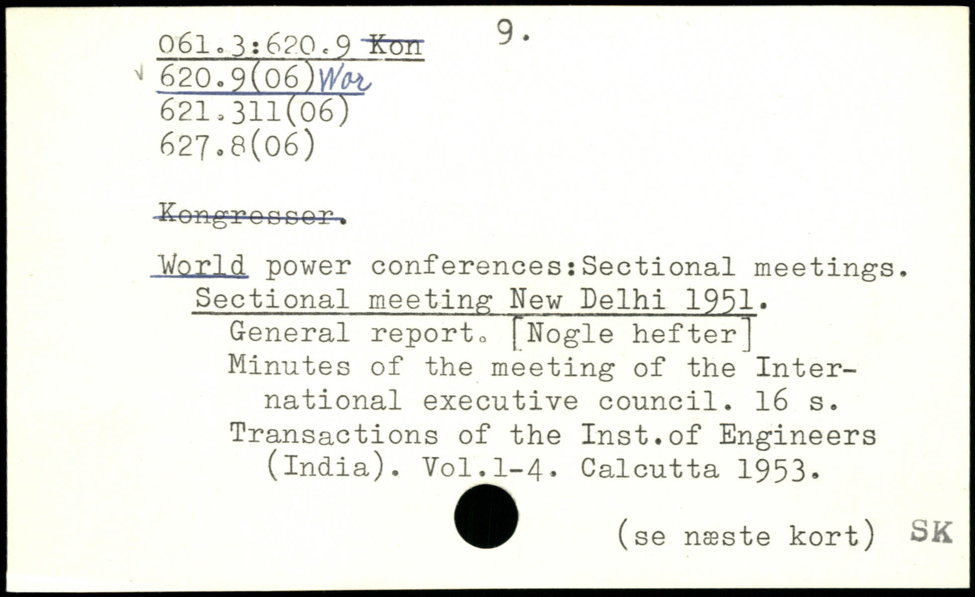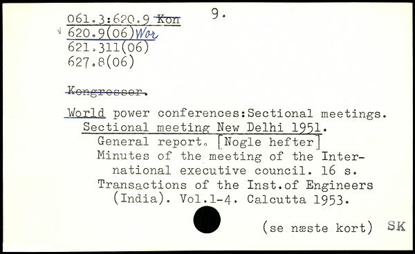 Keftg.ro Door. World power conferences:Sectional meetings. Sectional meeting New Delhi 1991. General report <,[Nogle hefter] Minutes of the meeting of the International executive council.