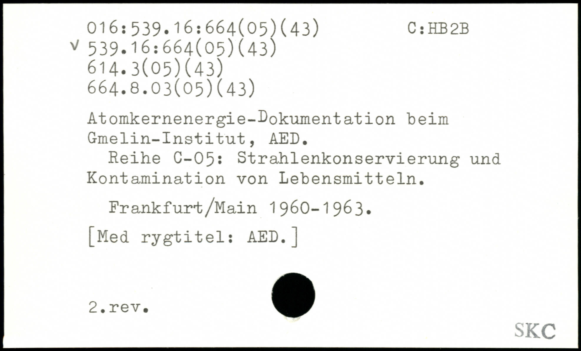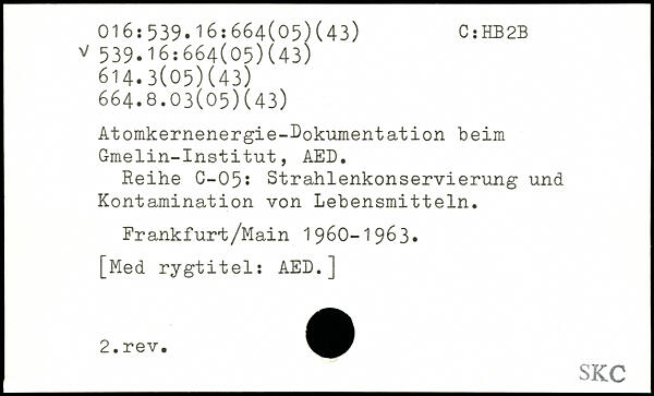 Atomkernenergie-hokumentation beim Gmelin-Institut, AED. Reihe C-05: Strahlenkonservierung und Kontamination von Lebensmitteln. Frankfurt/Main 1960-1963.