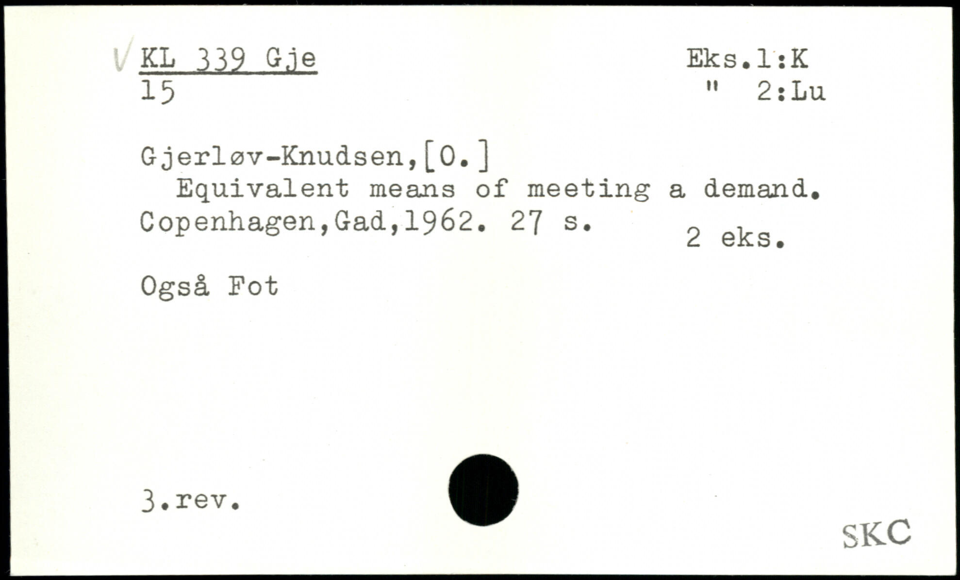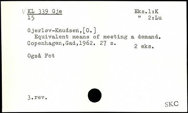 Gjerløv-Knudsen,[O.] Equivalent means of meeting a demand.