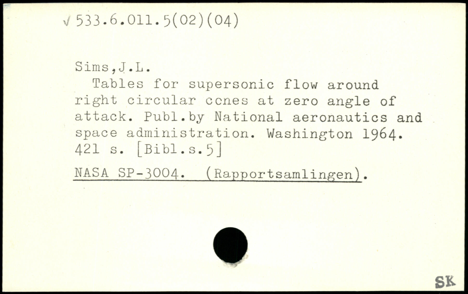 Tables for supersonic flow around right circular cones at zero angle of attack.