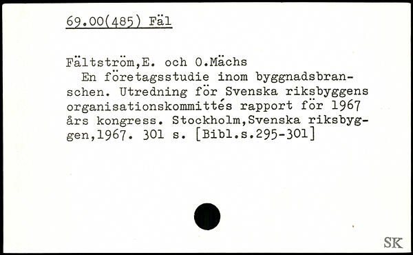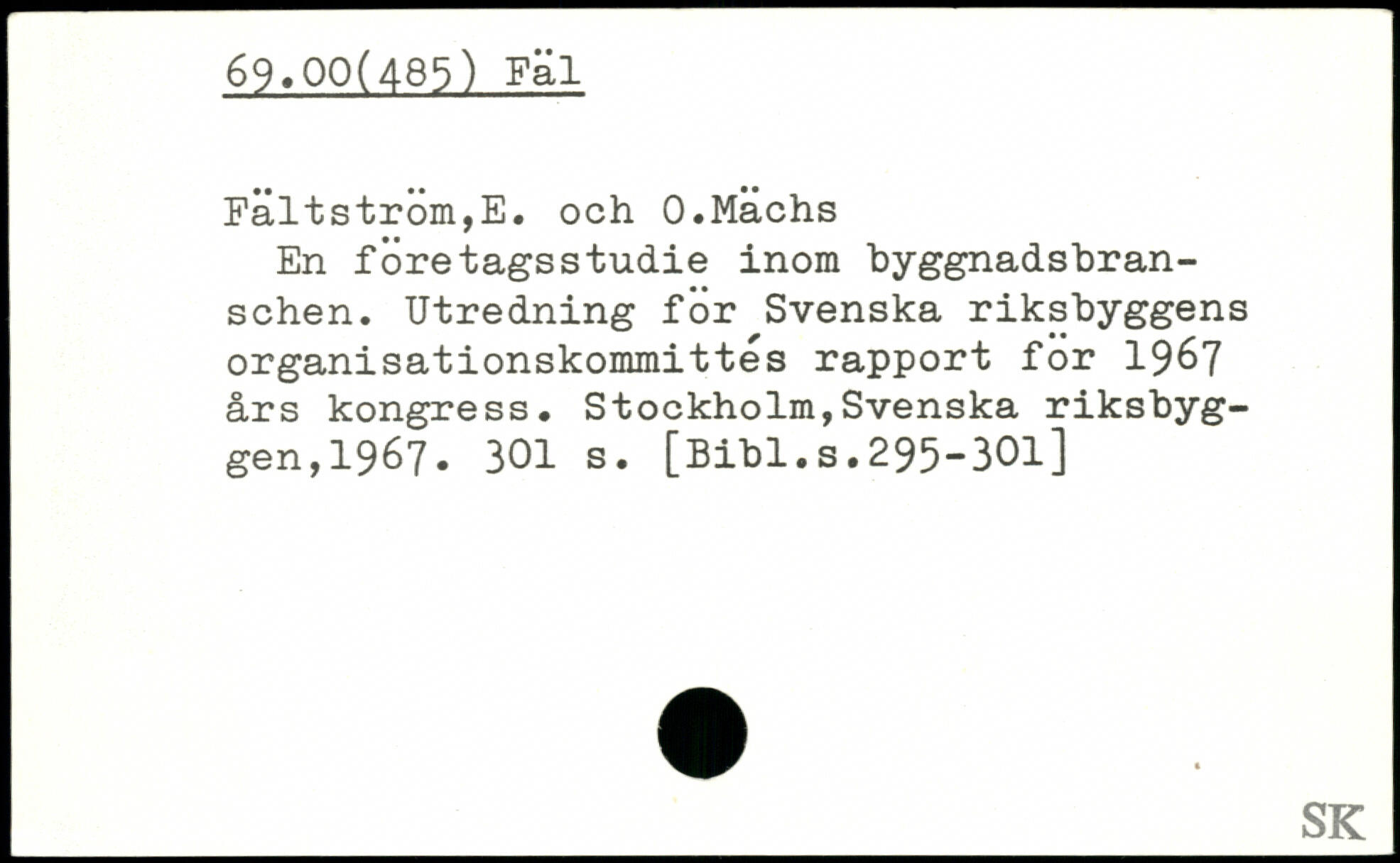 En företagsstudie inom byggnadsbran-schen. Utredning för Svenska riksbyggens organisationskommittés rapport for 1967 års kongress.