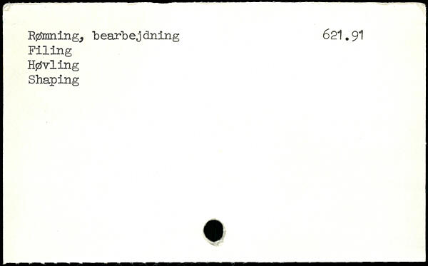 Rømning, bearbejdning 621.91 Filing Høvling Shaping