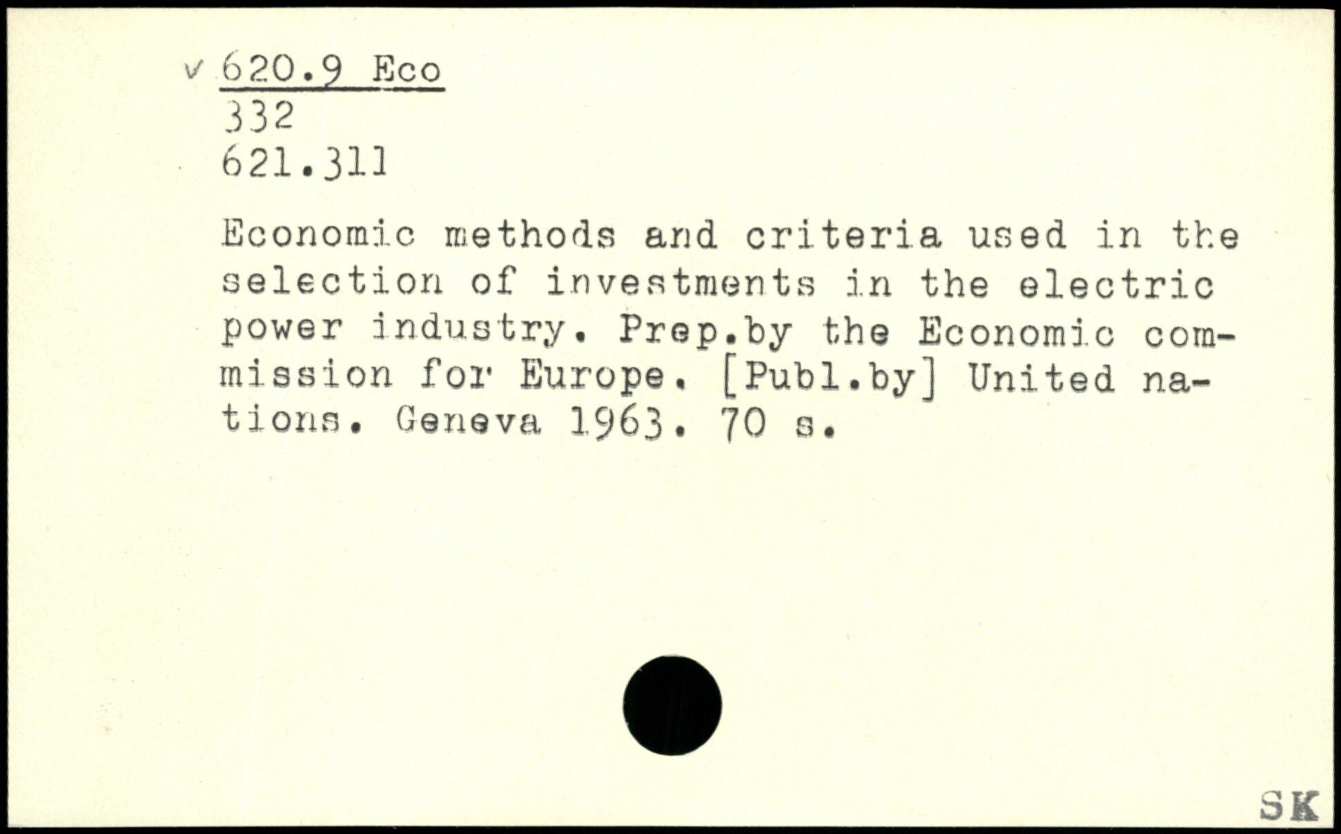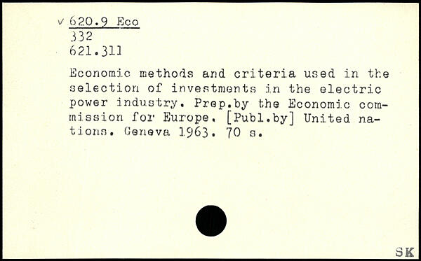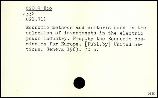 Economic methods and criteria used in the selection of investments in the electric power industry. Prep.by the Economic commission for Europe.