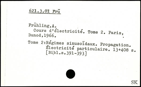 Cours d'électricité. Tome 2. Paris Dunod,1966. \ Tome 2ïRégimes sinusoïdaux. Propagation. Electricité particulaire.