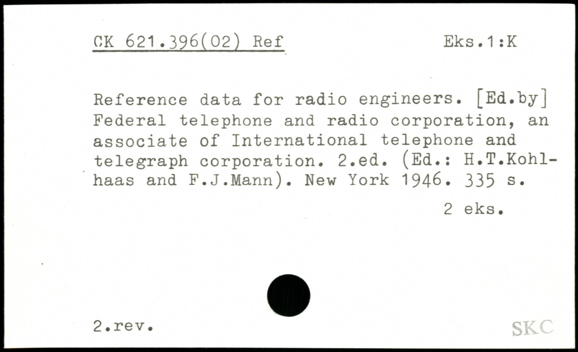 Reference data for radio engineers. [Ed.by] Federal telephone and radio corporation, an associate of International telephone and telegraph corporation.