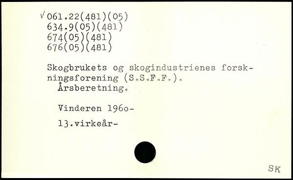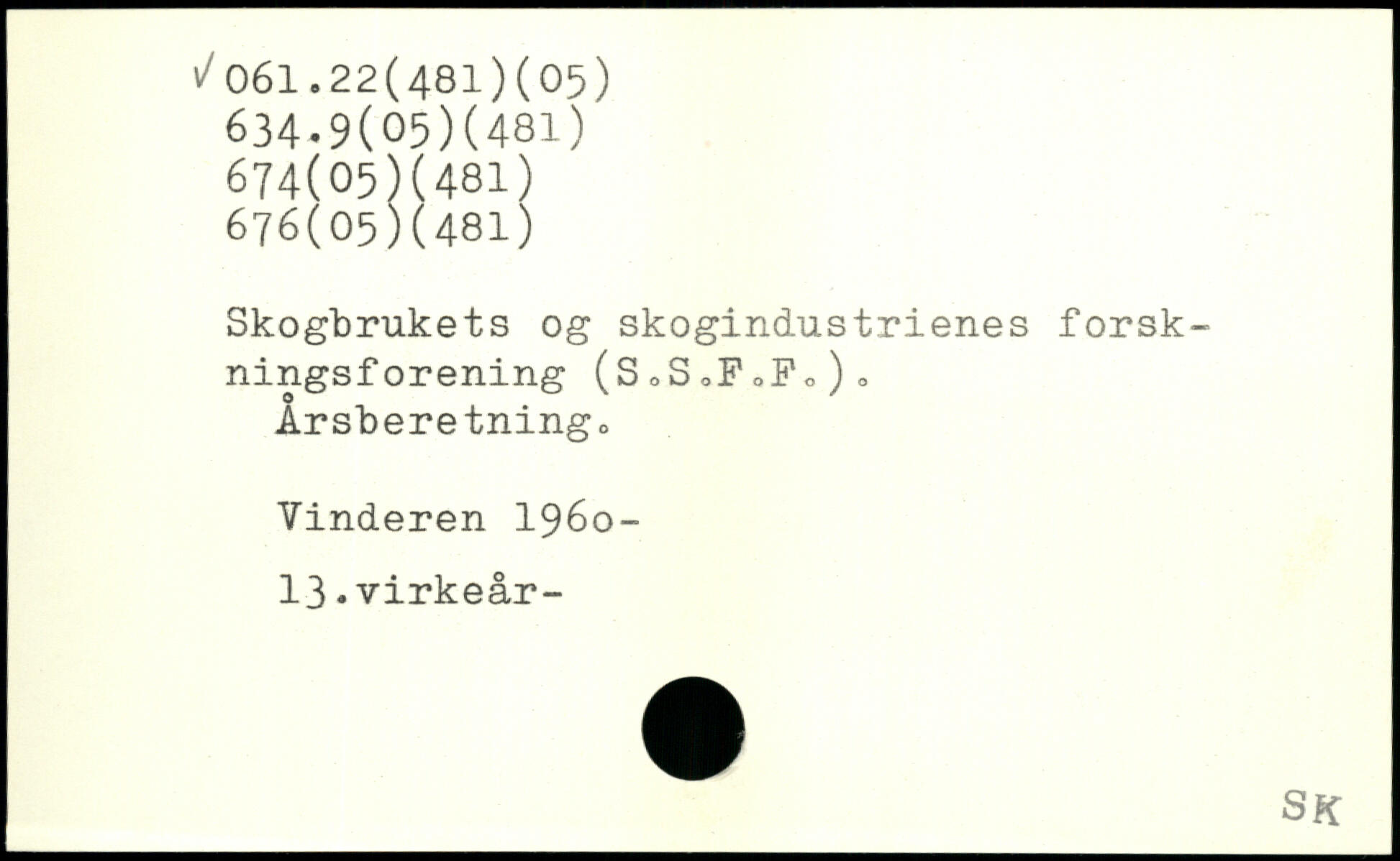Skogbrukets og skogindustrienes forskningsf orening (SoSoFoFo)o Årsberetning, Vinderen 1960-13.virkeår-
