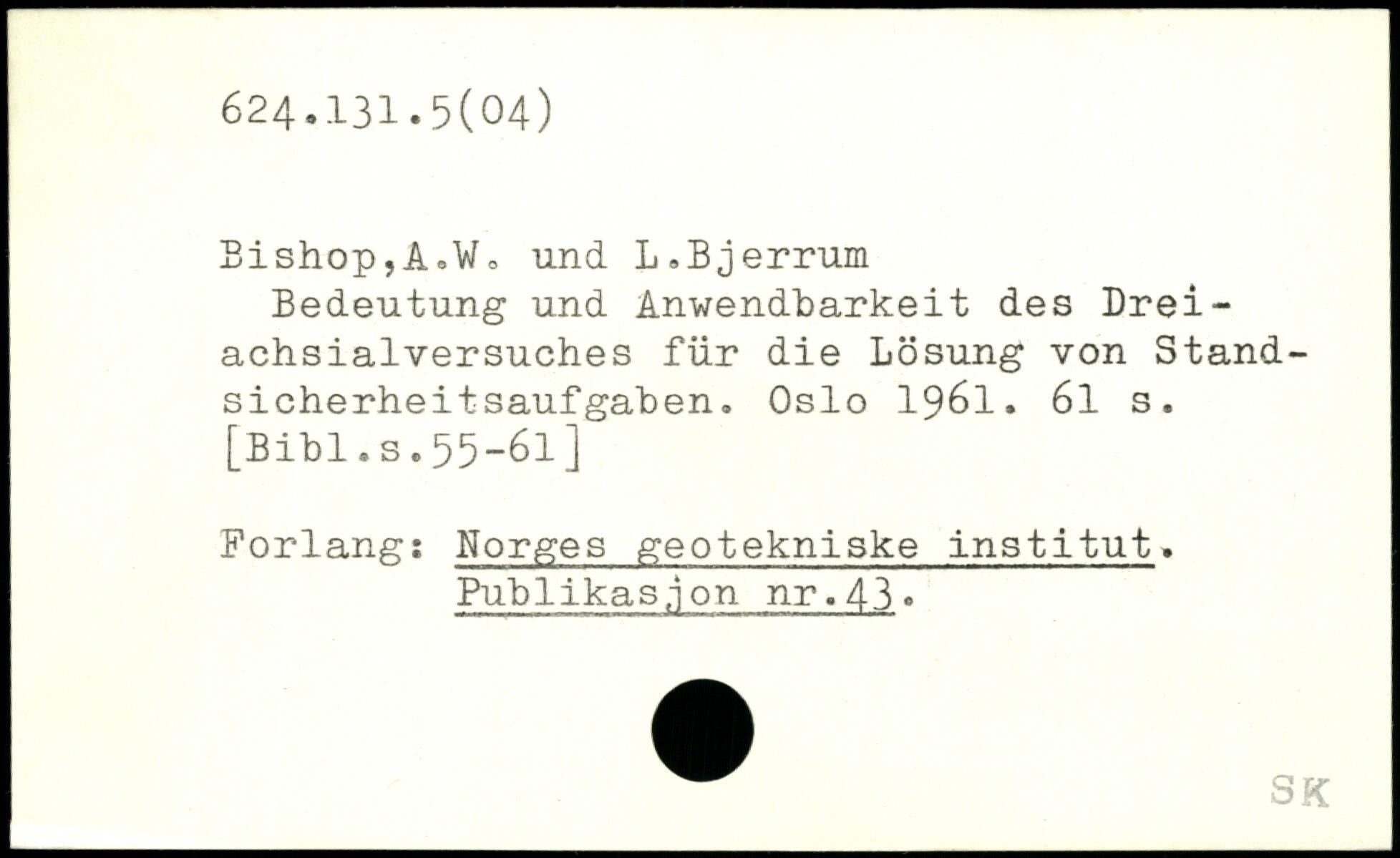 Bedeutung und Anwendbarkeit des Drei-achsialversuches für die Lösung von Stand-sicherheitsaufgaben. Oslo 1961.
