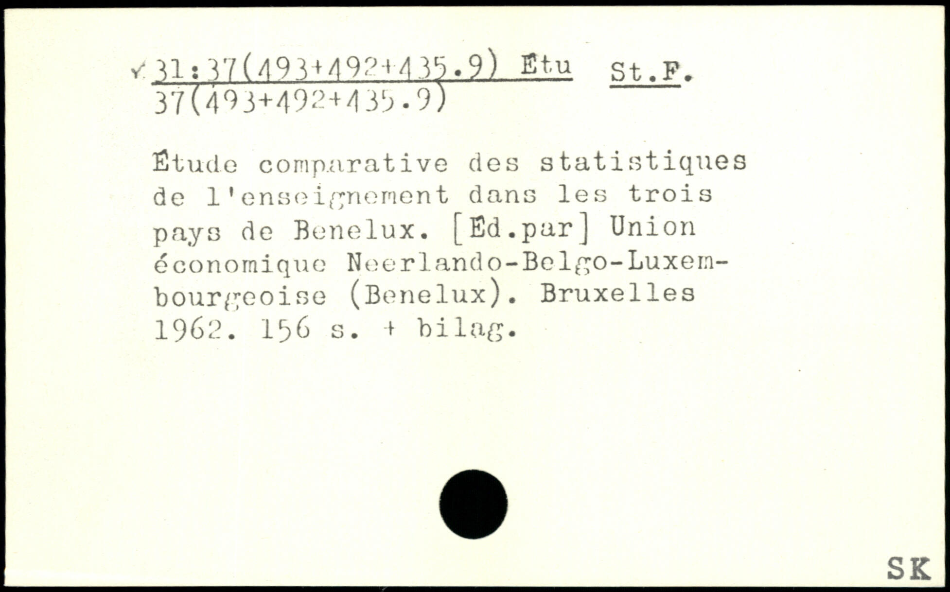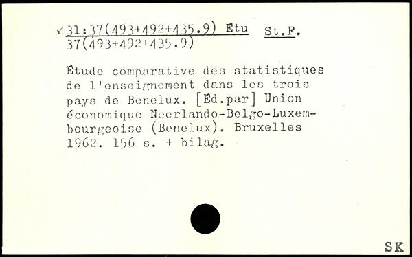 v U,y/(49.)H9P-M.yj.9) Bt.u st.F. 37('t‘}3+'l9:!+<U!>.9) Étude comparative des statistiques de l'enseignement dans les trois pays de Benelux. [Ed.par] Union cconomique Neerlando-Bolfjo-Luxembourgeoise (Benelux).