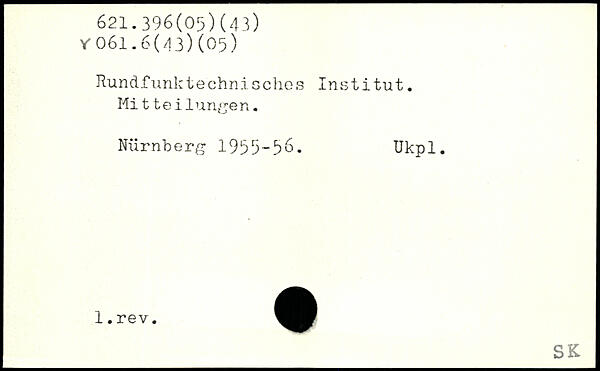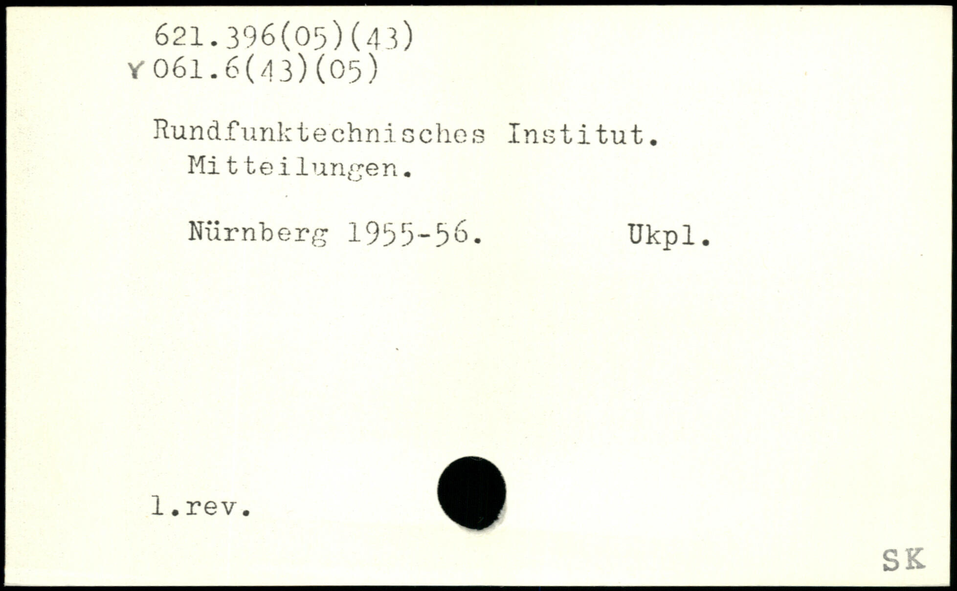 Rundfunktechnisches Institut. Mitteilungen. Nürnberg 1955-56. Ukpl.