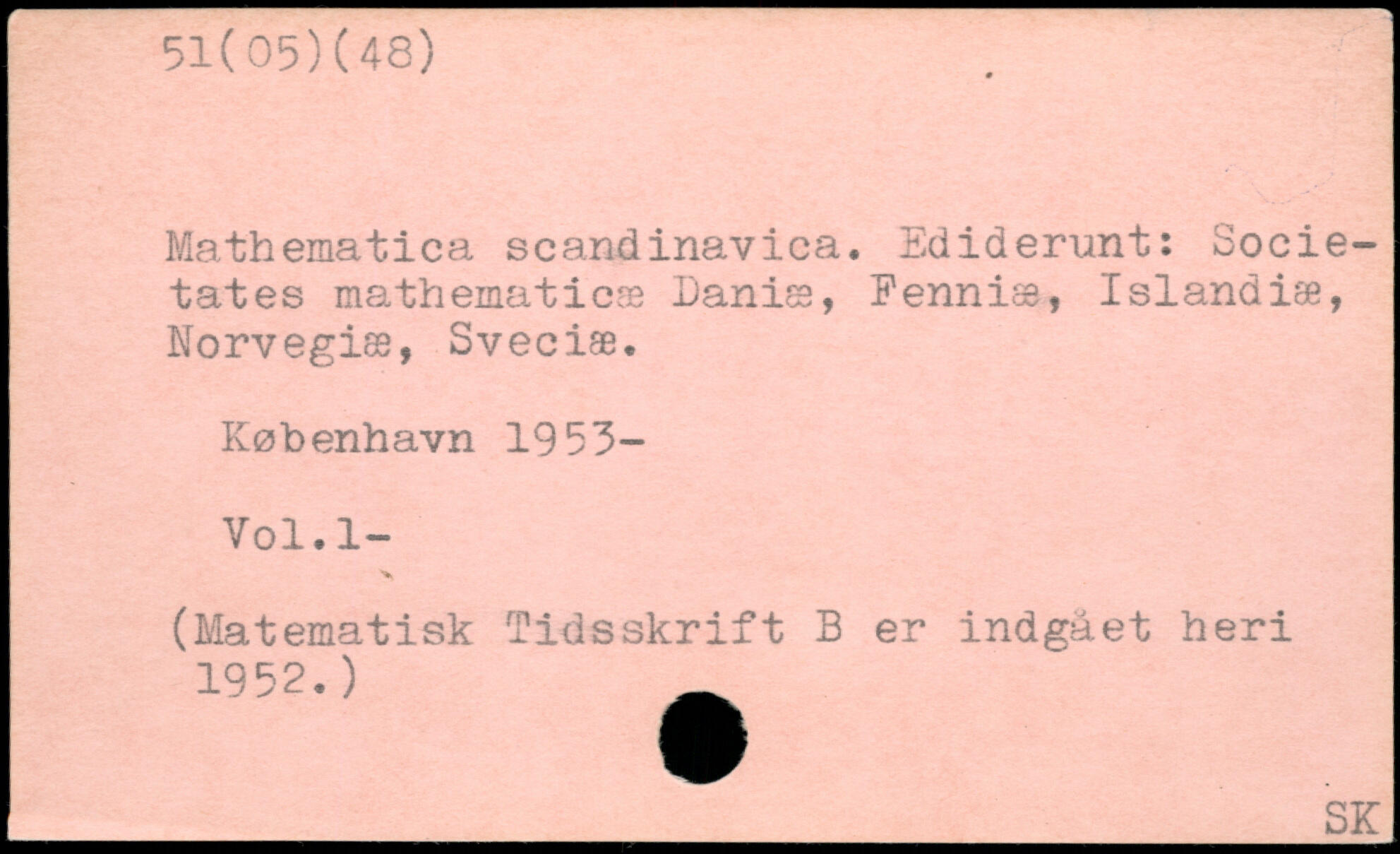 Mathematica scandinavica. Ediderunt: Socie-tates mathematicæ Daniæ, Penniæ, Islandiæ, Norvegiæ, Sveciæ.