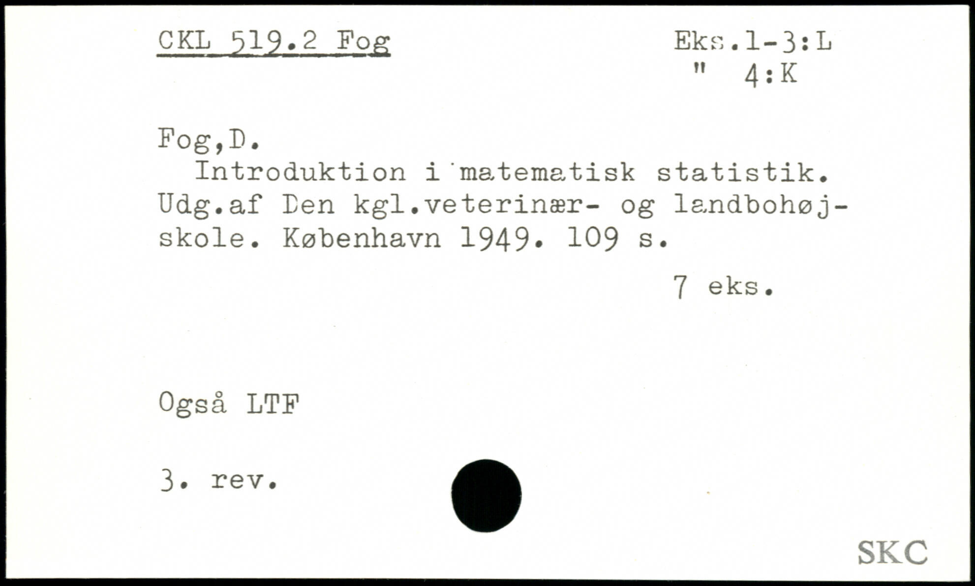 Introduktion i matematisk statistik. Udg.af Len kgl.veterinær- og landbohøjskole.