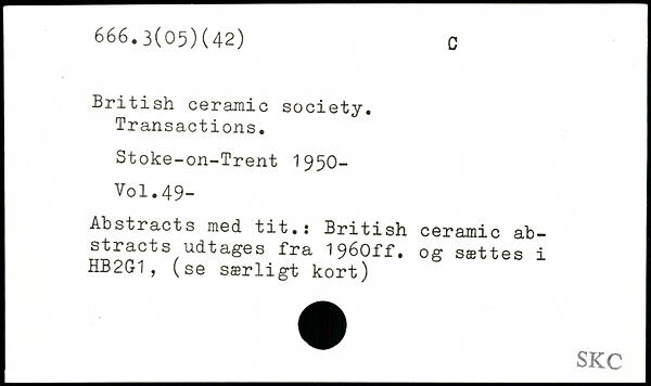 British ceramic society. Transactions. Stoke-on-Trent 1950-