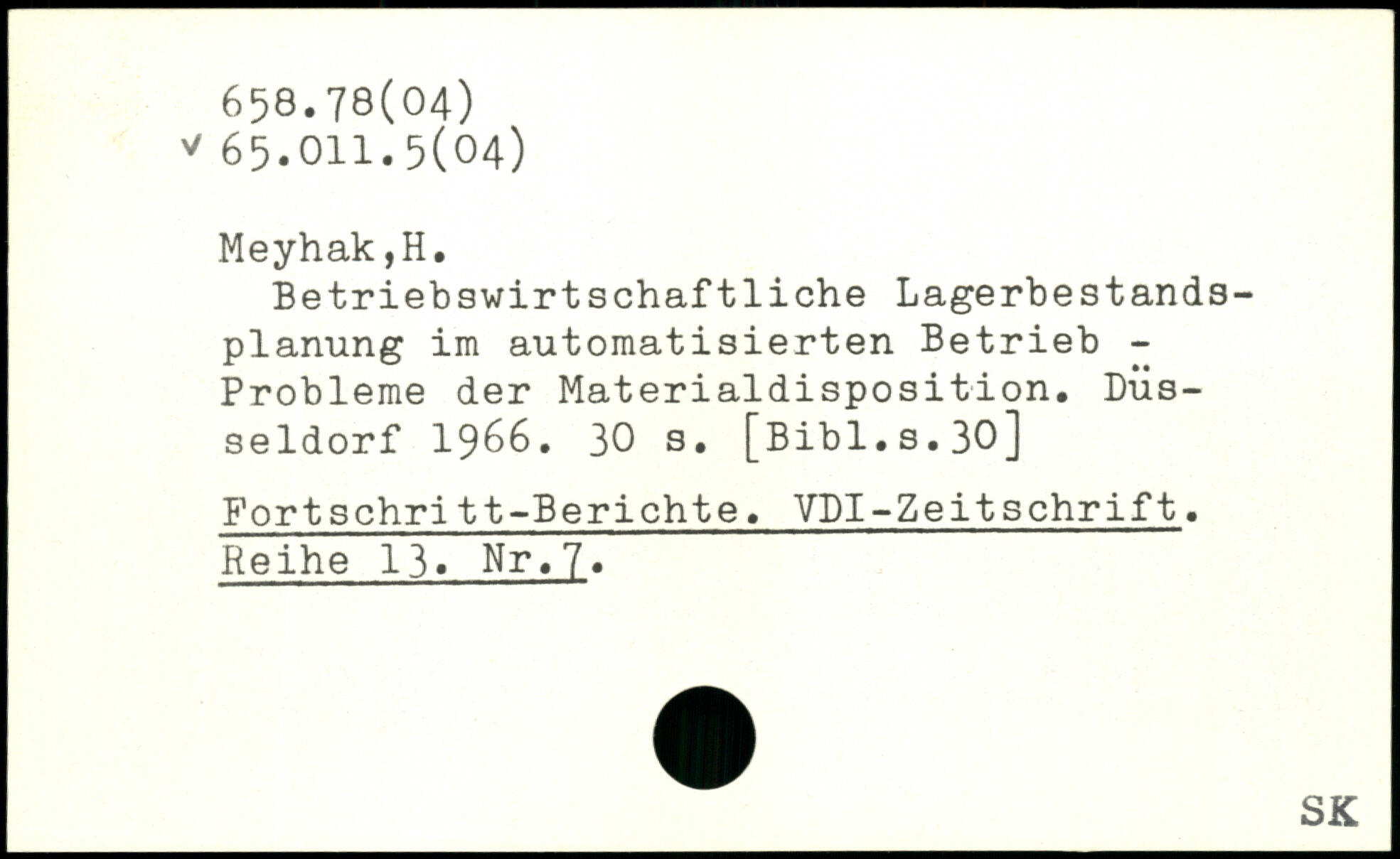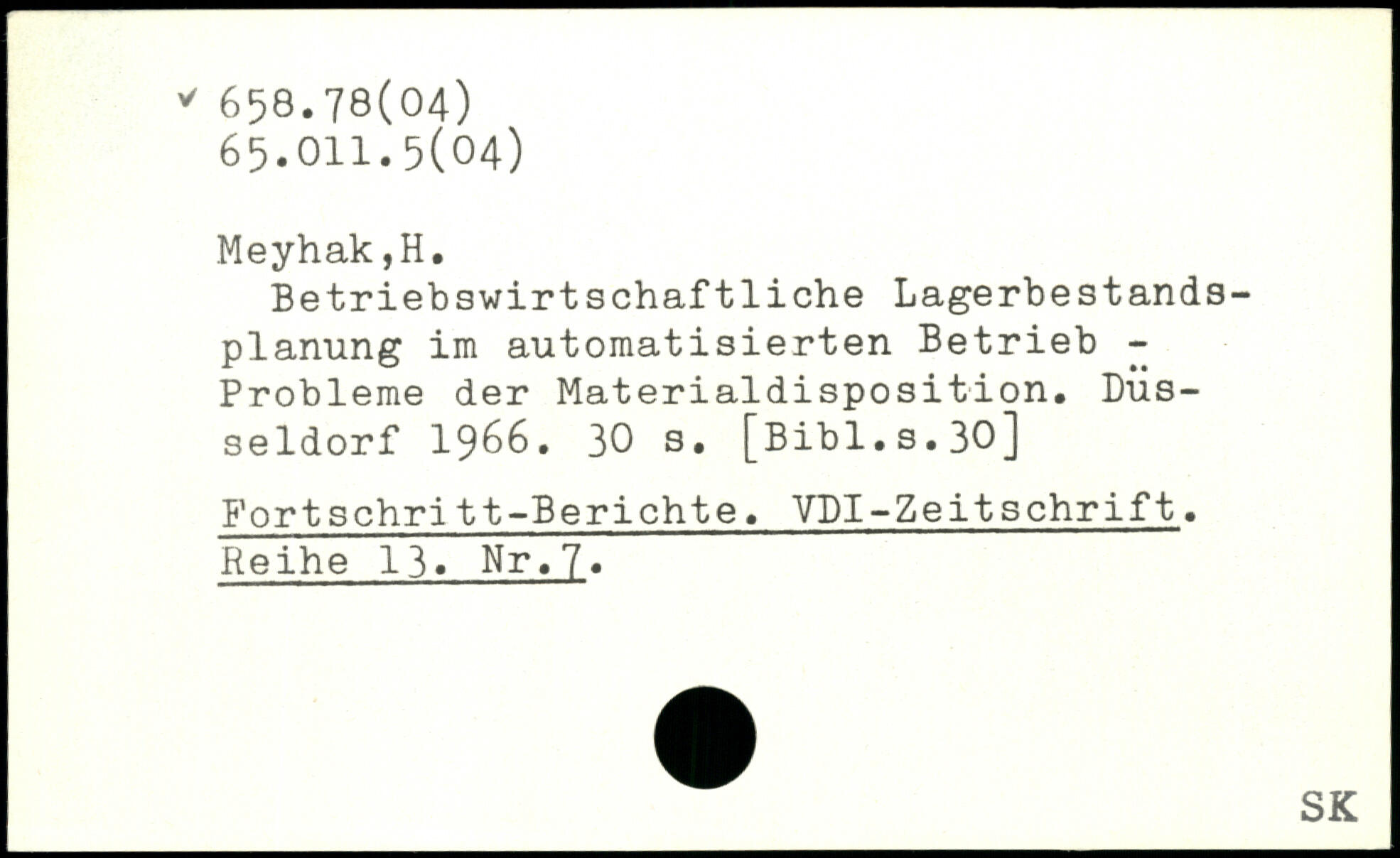 Betriebswirtschaftliche Lagerbestandsplanung im automatisierten Betrieb -Probleme der Materialdisposition. Düsseldorf 1966.