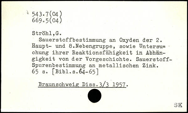 SauerstoffBestimmung an Oxyden der 2. Haupt- und 8.Nebengruppe, sowie Untersu= chung ihrer Reaktionsfähigkeit in Abhängigkeit von der Yorgeschichte. Sauerstoff-SpurenbeStimmung an metallischen Zink.