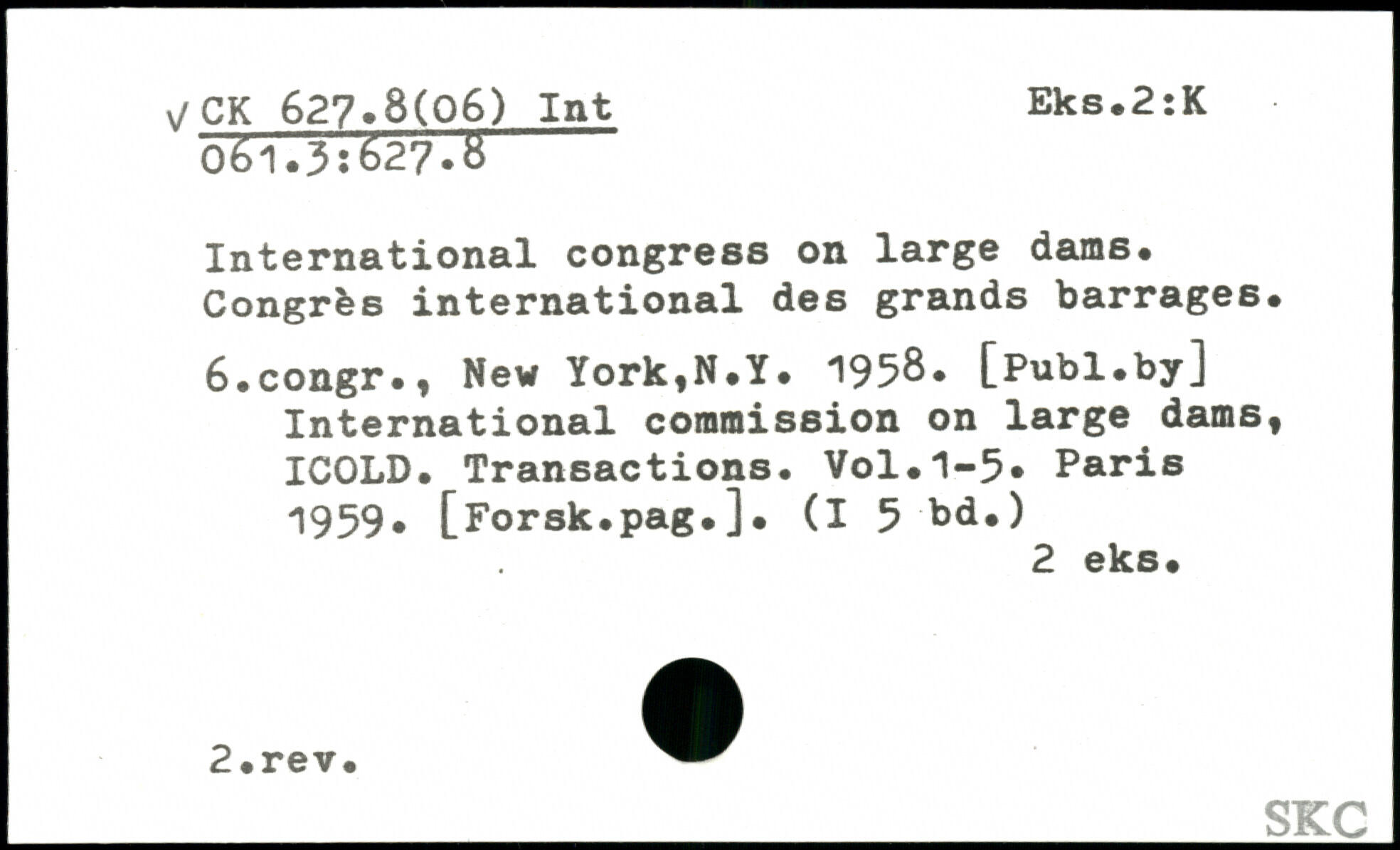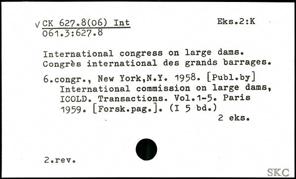 International congress on large dams. Congrès international des grands barrages. 6.congr., New York,N.Y. 1958.