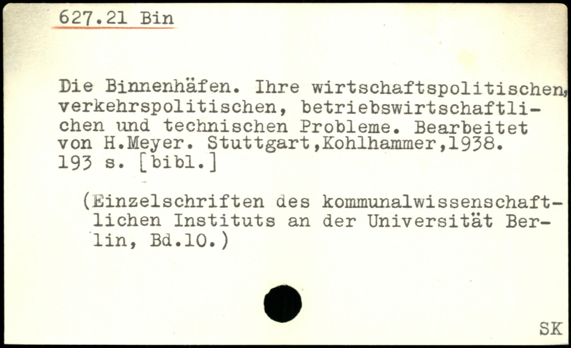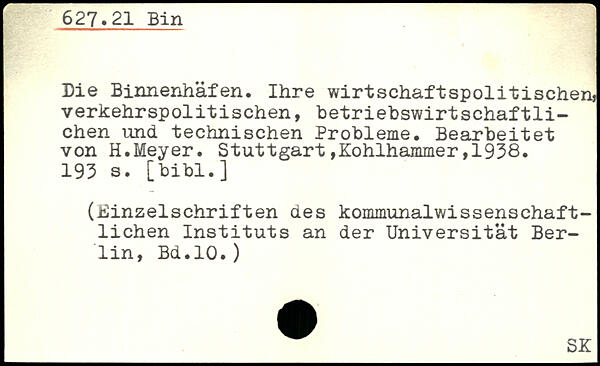 Die Binnenhäfen. Ihre wirtschaftspolitischen, verkehrspolitischen, betriebswirtschaftlichen und technischen Probleme. Bearbeitet von H.Meyer.