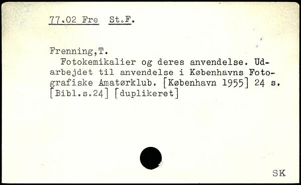 Fotokemikalier og deres anvendelse. Udarbejdet til anvendelse i Københavns Fotografiske Amatørklub.