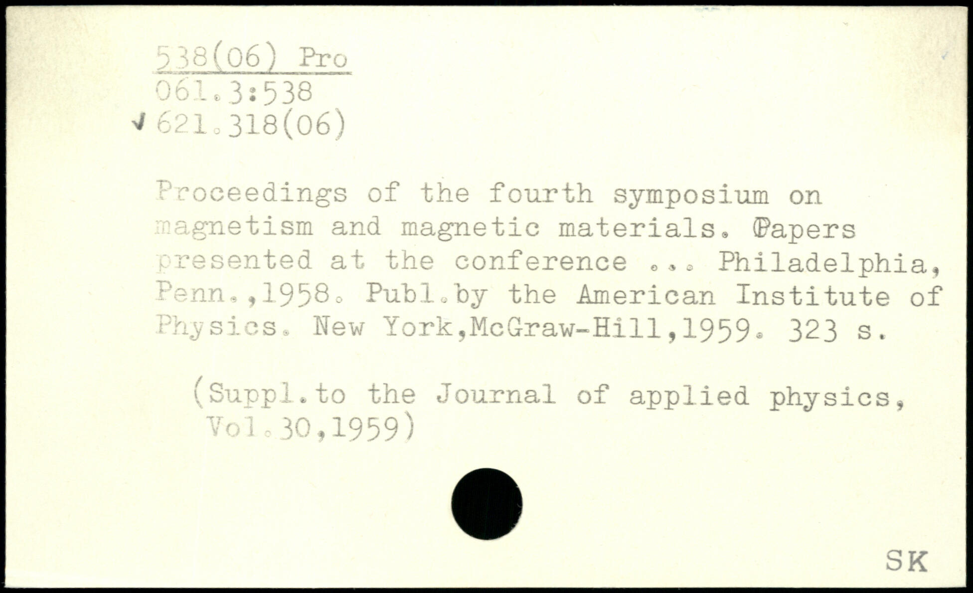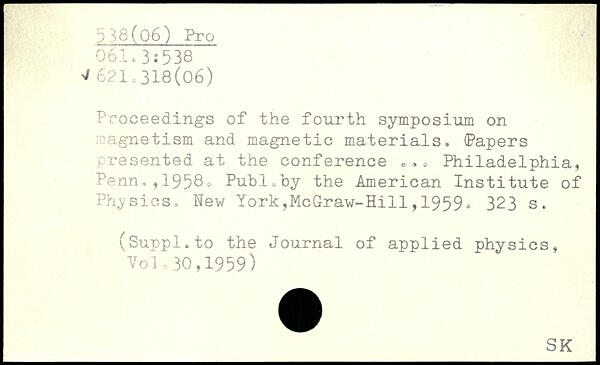 Proceedings of the fourth symposium on magnetism and magnetic materials, (Papers presented at the conference ,,, Philadelphia, Penn,,1958.